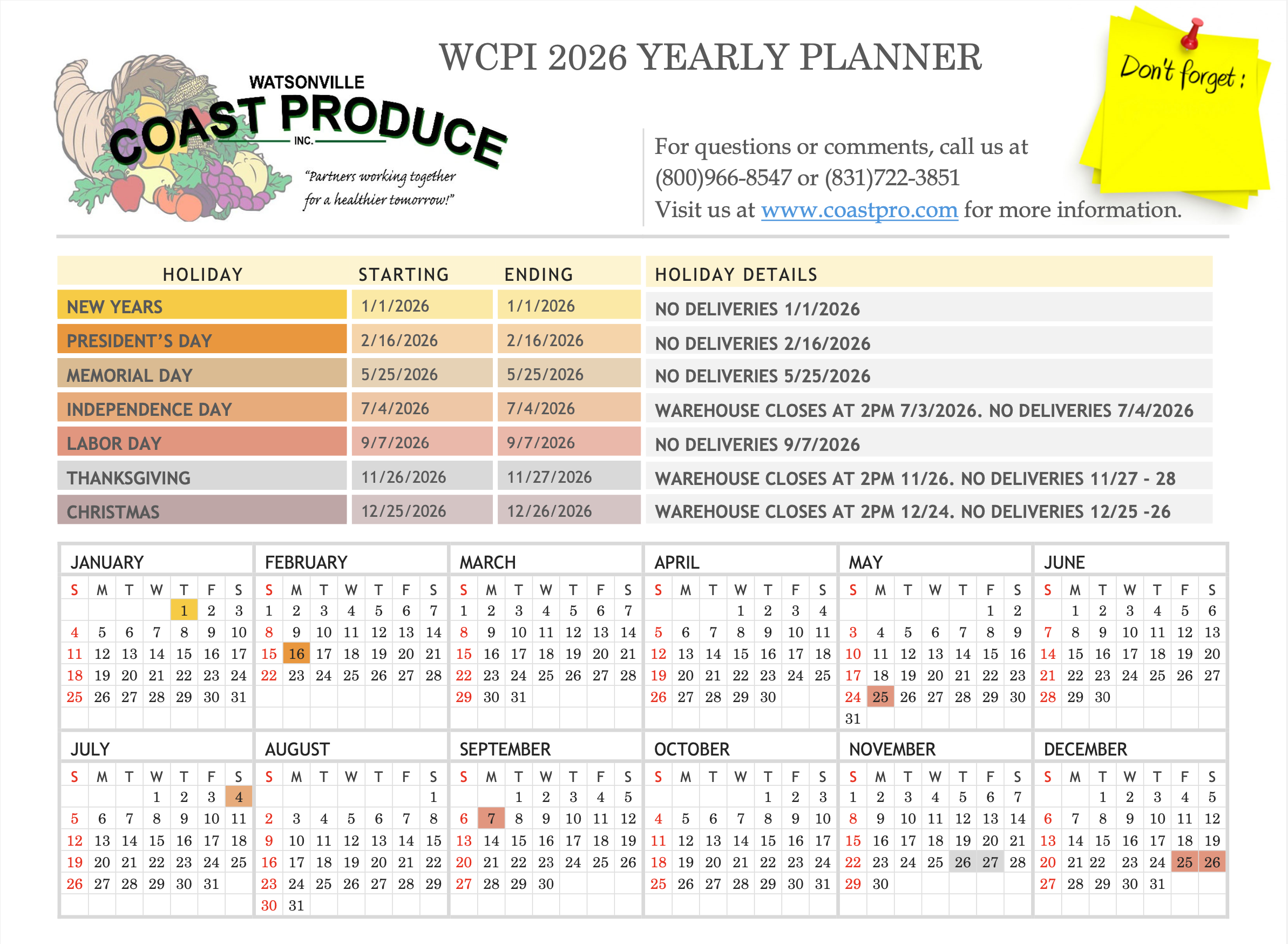 Walk-ins and Warehouse Hours:
